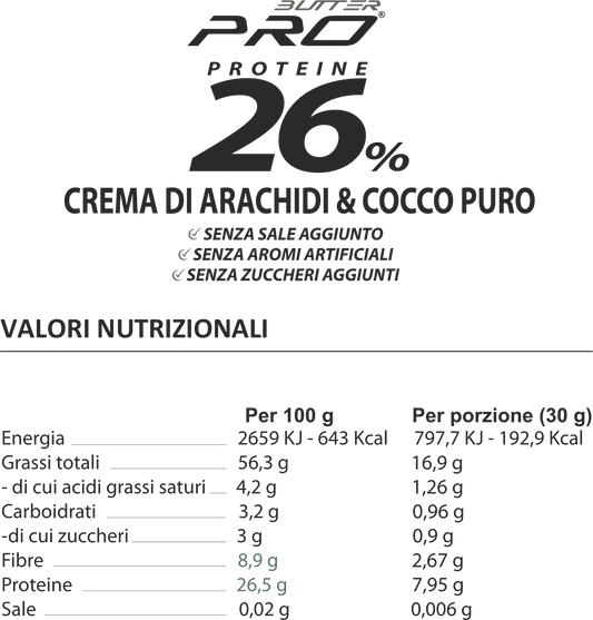 Burro di Arachide + cocco puro proteico 250gr