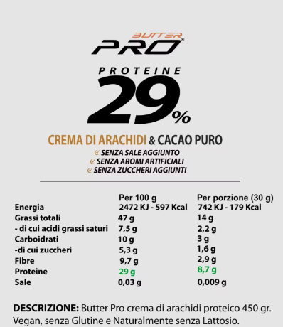 Burro di arachide + Cacao puro Proteico 450 gr